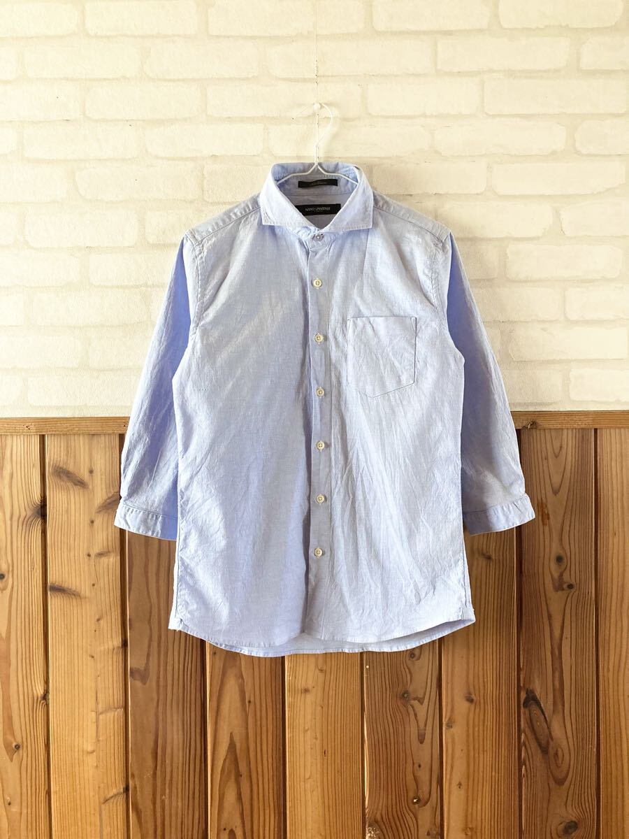 - 古着 NANO・UNIVERSE ナノユニバース メンズ 七分袖 シャツ Sサイズ 水色 カジュアル シワ加工 トップスshirt ①