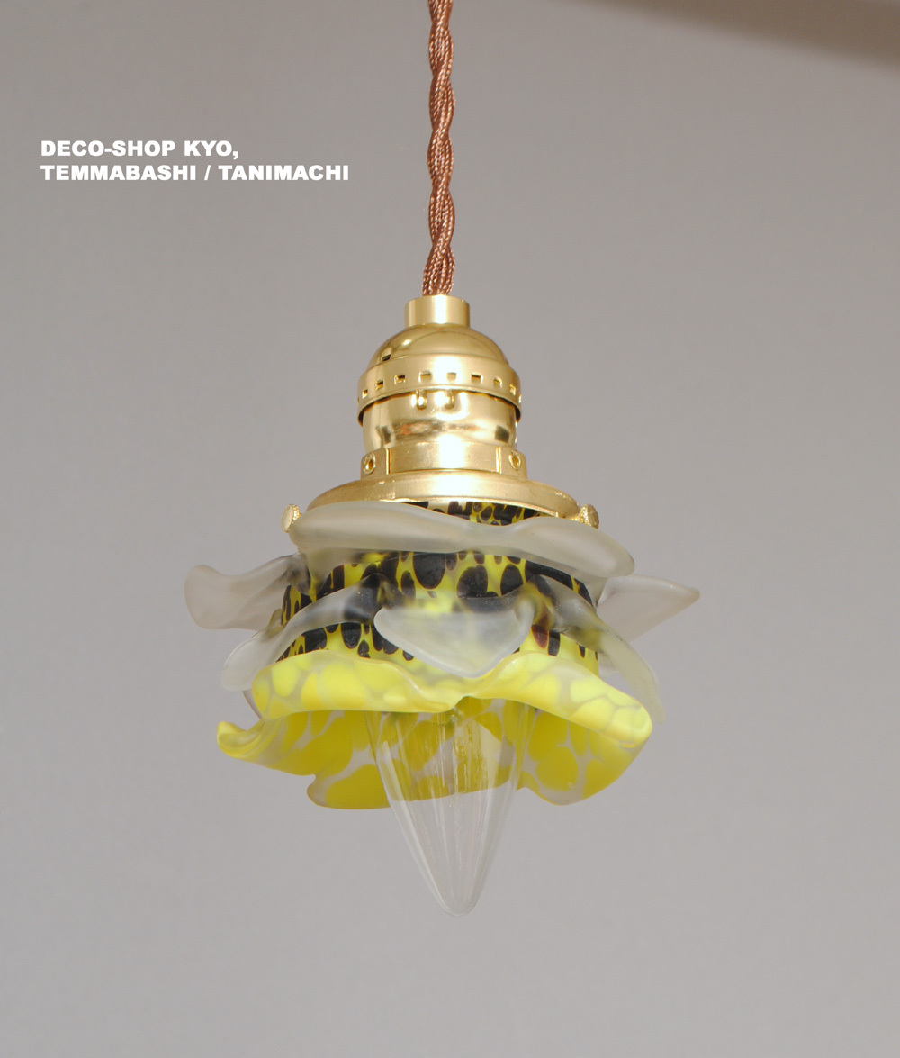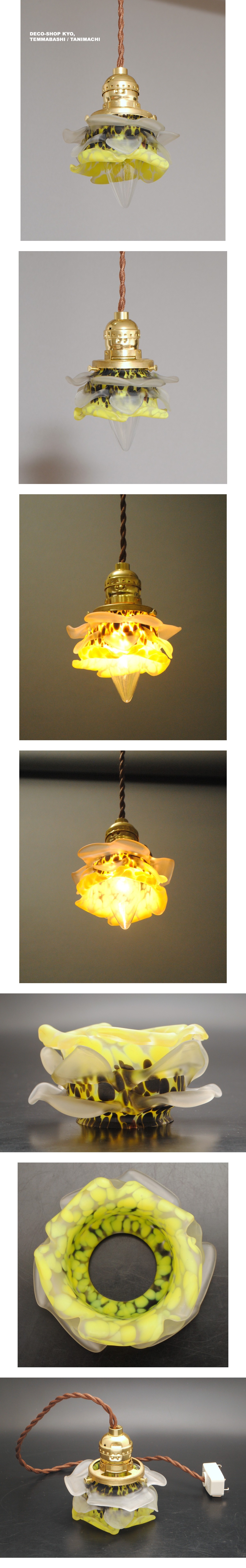 - フランス・アールデコ期!!高品質,多色溶かし込み&クリア仕上げ、手作業バラ造形・アプリカシオン装飾ガラス・ペンダントランプ!!灯具付き