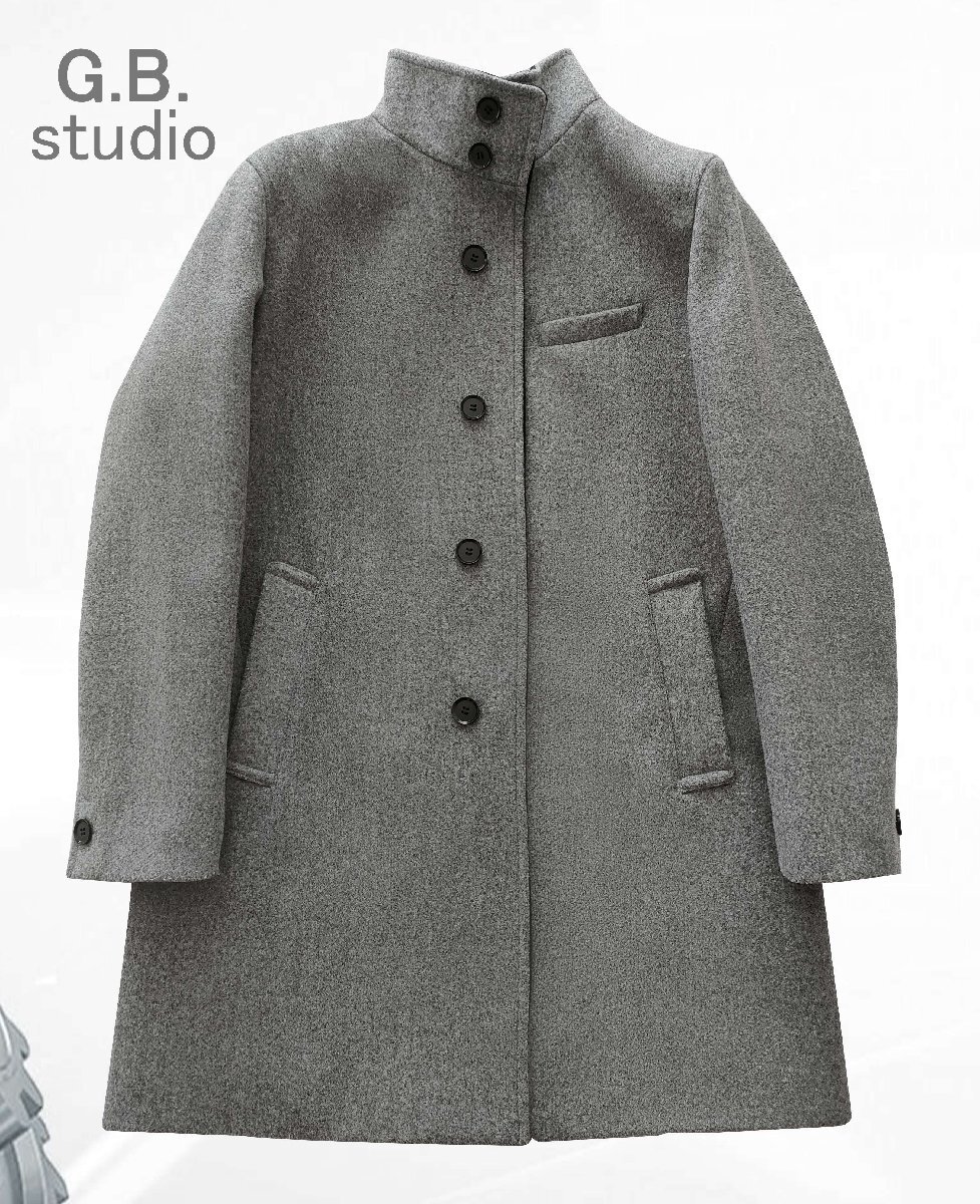> ウール調ステンカラーコート メンズ グレー ロングコート 厚手 ノーカラーコート チェスターコート ゆったり コート ピーコート 体型カバ
