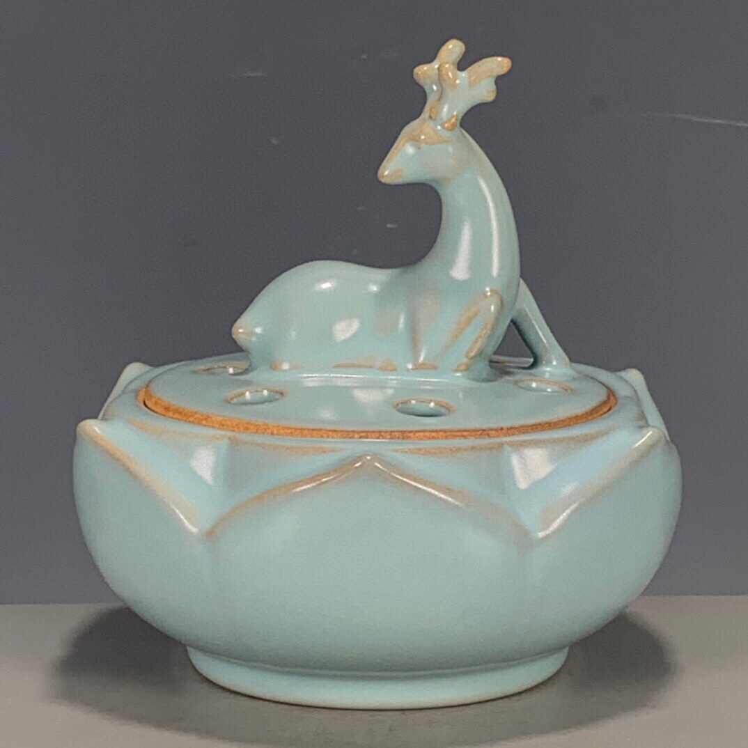 - 宋 汝窯 青釉 宋汝窯青釉清涼寺御製蓮華梅鹿燻香炉 磁器 五大名窯鈞 鈞磁器 宋 賞皿置物 窯変釉 置物 鈞磁 盧鈞 装飾 磁器