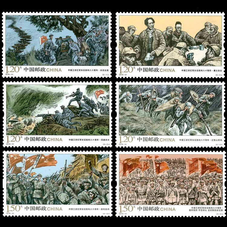 > 送料無料 中国切手 2016-31 紅軍長征勝利八十周年 6種 未使用 美品 保護袋付き 外国切手 収蔵 コレクション 使用可 郵便発送 zh1378