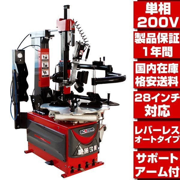 - タイヤチェンジャー 単相200V 28インチ対応 レバーレス オート サポートアーム付 ■選べる配達方法 1年保証 最高機種 タイヤ交換 T209
