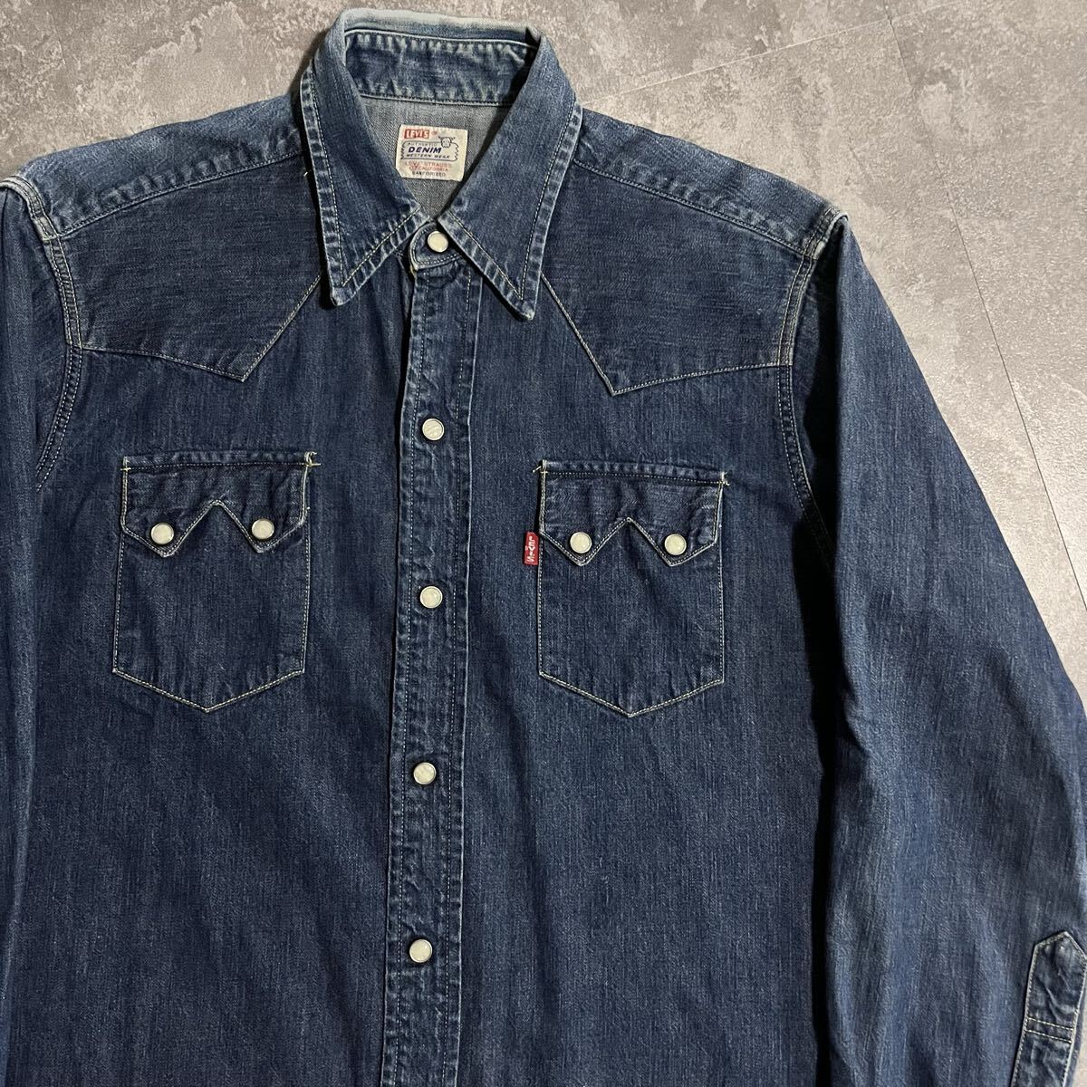 > Levi’s リーバイス ショートホーン USA製 デニムシャツ ビッグE 濃紺 長袖シャツ ウエスタン ウエスタンシャツ 90s インディゴ
