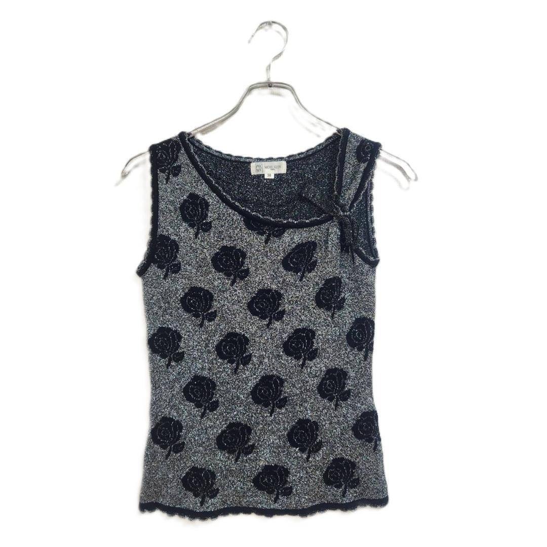 - MICHEL KLEIN ノースリーブチュニック 38 M 黒 花柄ラメ 上品
