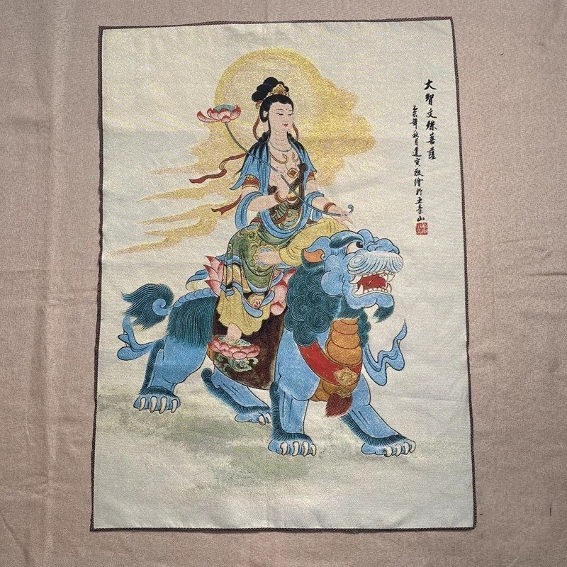 - 送料無料 錦絵 織錦 文殊菩薩 中国芸術品 美術品 未表装 表装なし 装飾 展示 60*90cm ZH463