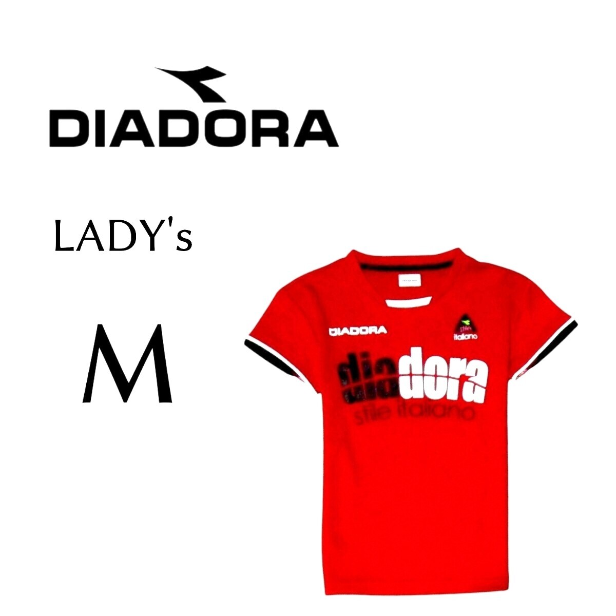 - 送料込み レディースMサイズ DIADORAディアドラ 半袖プラクティスシャツ 赤色
