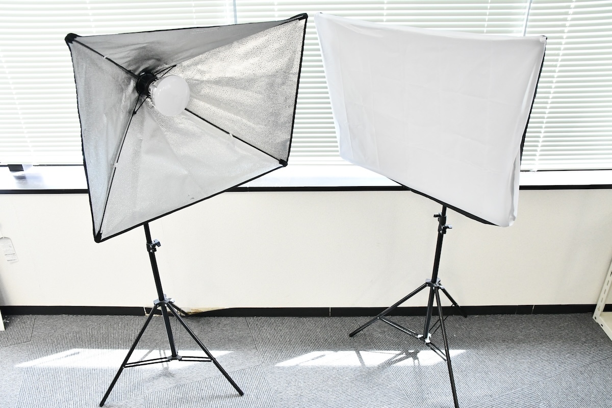 - 【同梱不可】 メーカー不明 ソフトボックスライト + ライトスタンド 撮影機材 カメラアクセサリー ■35291