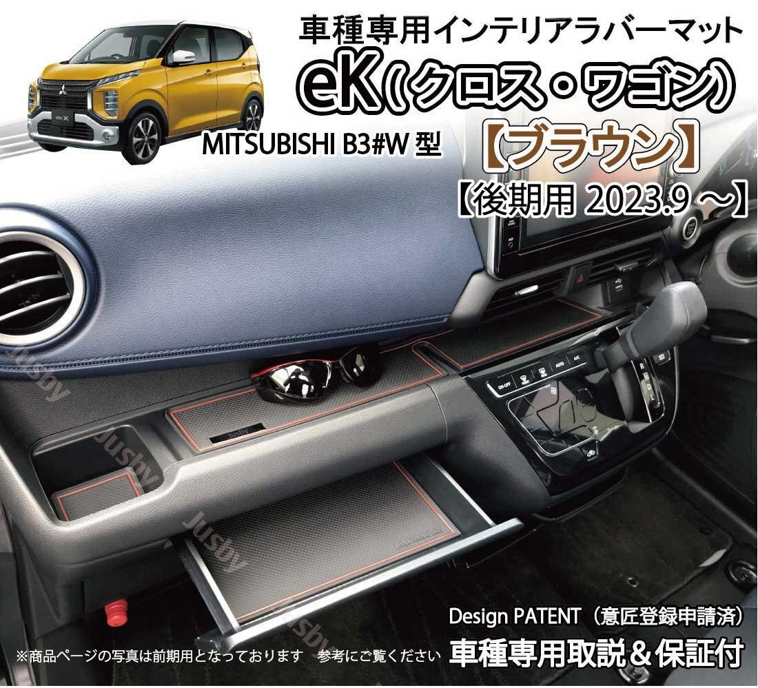 - (後期) ekワゴン/ekクロス用インテリアラバーマット(ブラウン/茶色)30系 ドアポケットマット フロア ドレスアップパーツ マット 三菱