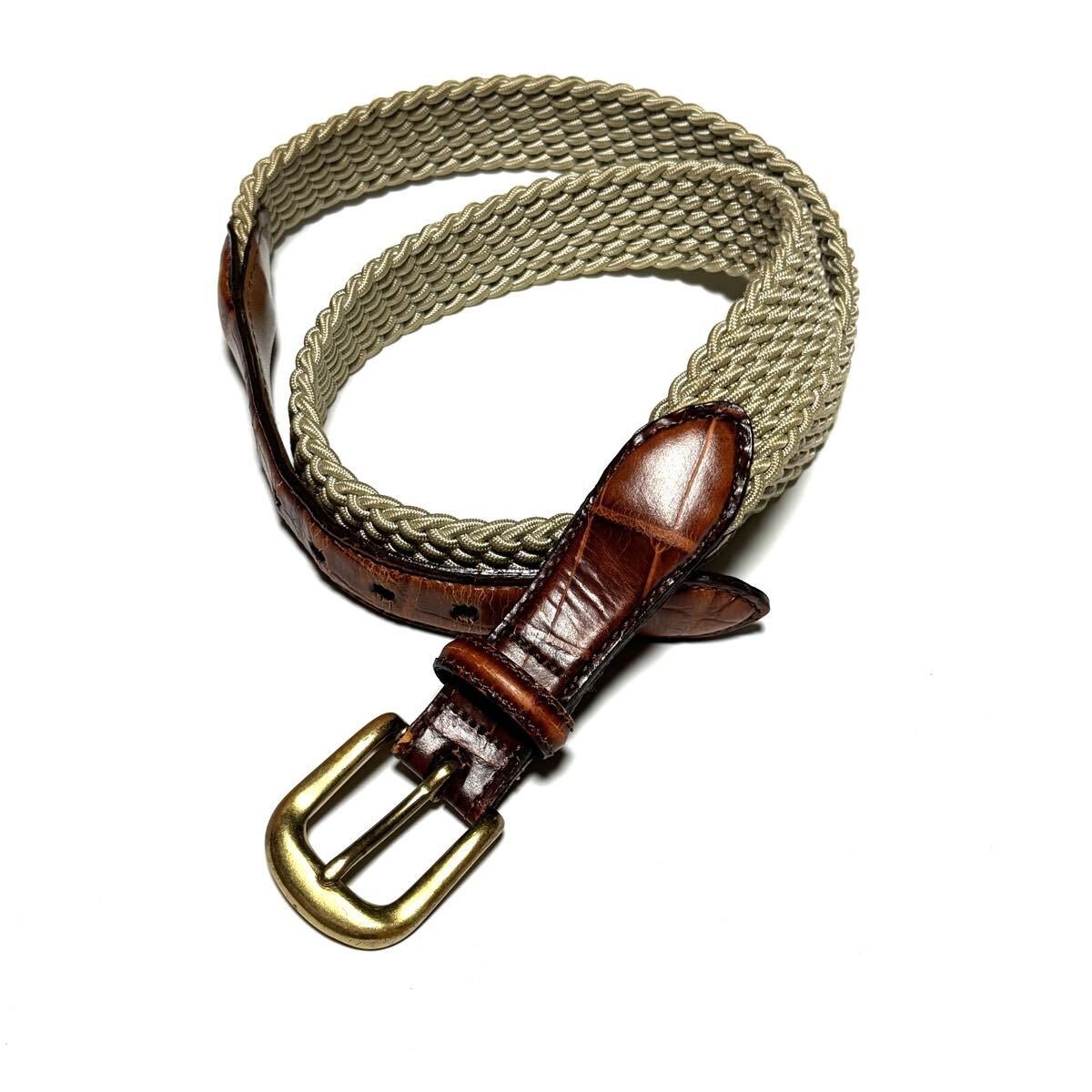 - w86㎝〜w92㎝ brighton ベルト brass 本革 編み込みゴム コンビベルト メンズ トラッド アメトラ