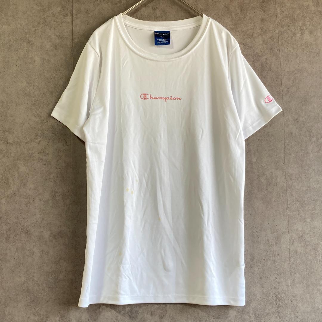 - チャンピオン(L)Tシャツ*半袖*カットソー*スポーツ*ロゴ刺繍*Uネック*白