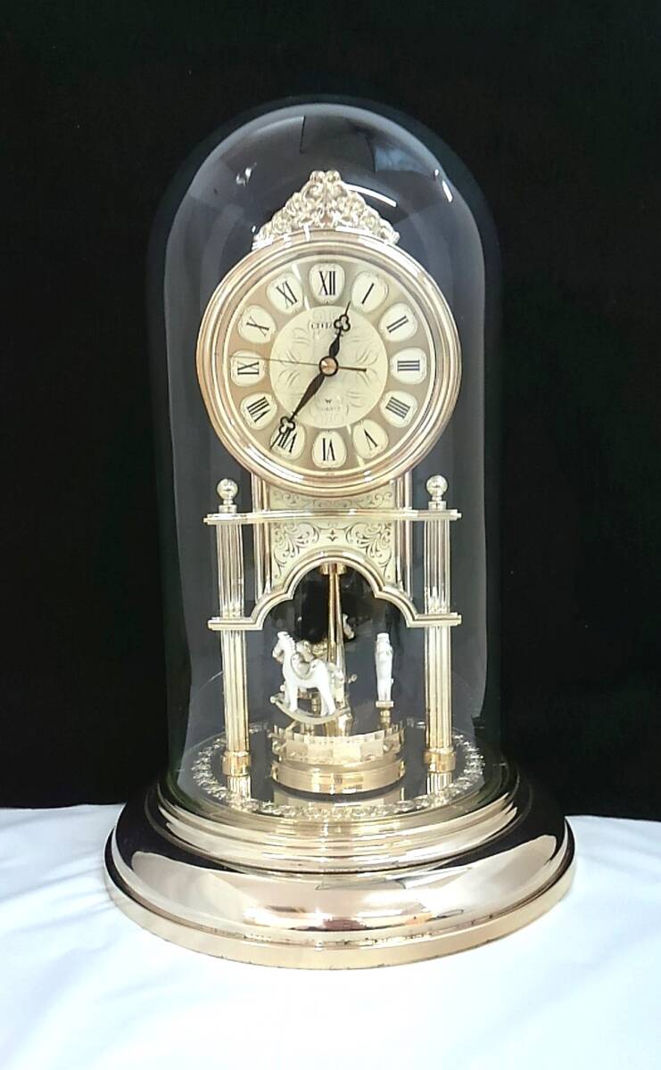 > 【菊水-555】CITIZEN シチズン 回転振り子式タイプ 置き時計/クォーツ式/ガラスドーム/メリーゴーランド/動作確認済/中古(IT)