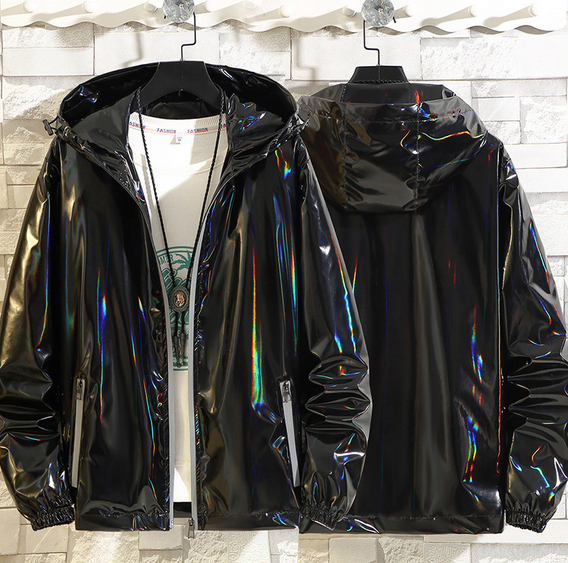 > メンズ 光沢 ジャケット マウンテンパーカー アウター ジップパーカー 春秋 ジャンパー ブルゾン カジュアルジャケット 黒 2色 M~5XL