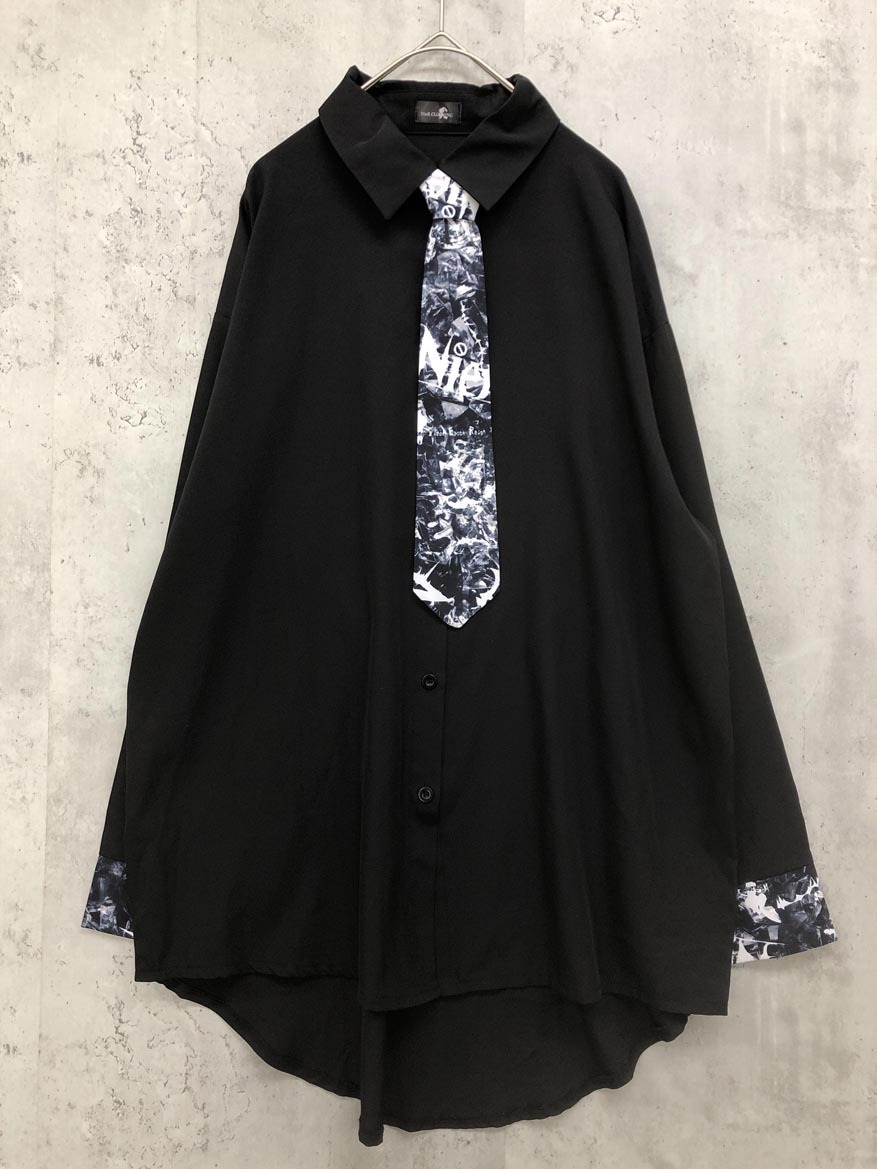 > ゆうパケットOK NieR Clothing ニーアクロージング ユニセックス ワンタッチ ネクタイ付き ブロッキング シャツ sizeF/黒 ◇■