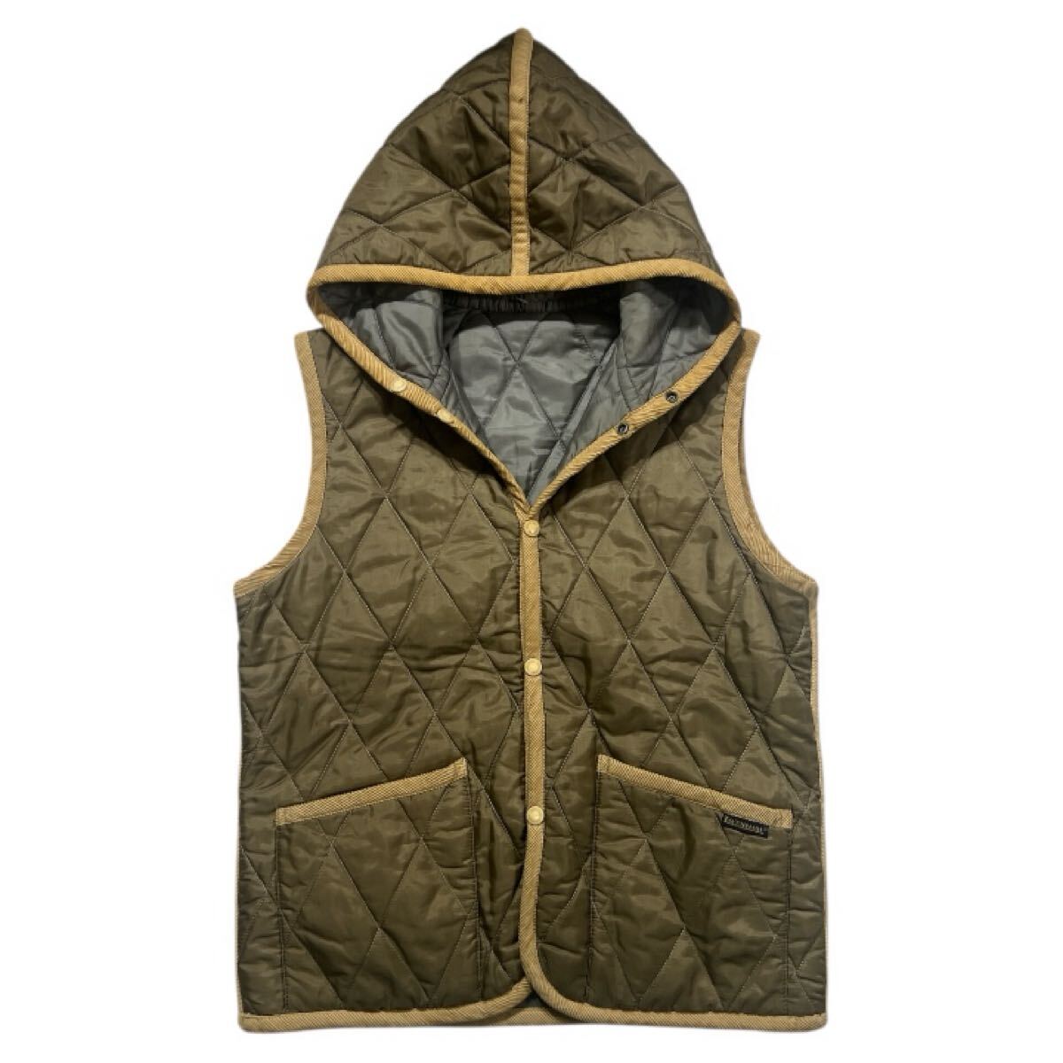 - イギリス製 ■ LAVENHAM ラベンハム ■ ロゴ ラベル 中綿入 キルティング フーディー リバーシブル ベスト ブラウン×グレー 38
