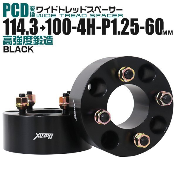> Durax PCD変換 ワイドトレッドスペーサー 114.3→100-4H-P1.25-60mm 黒 4穴のPCD114.3mmからPCD100mm 2枚セット ホイールスペーサー