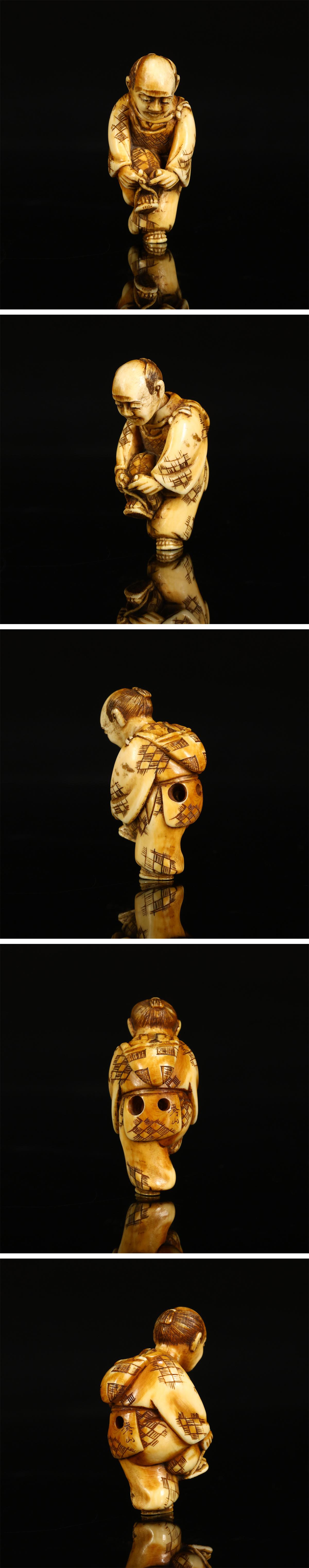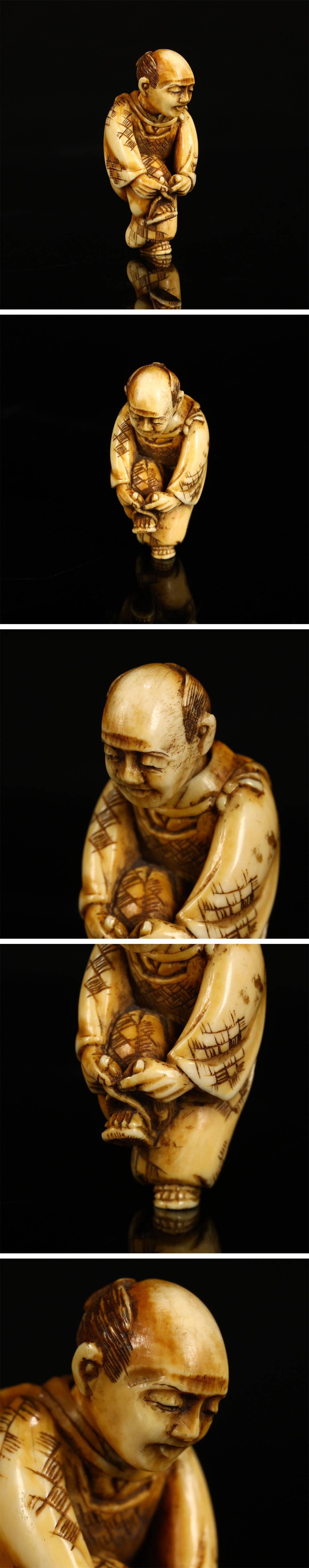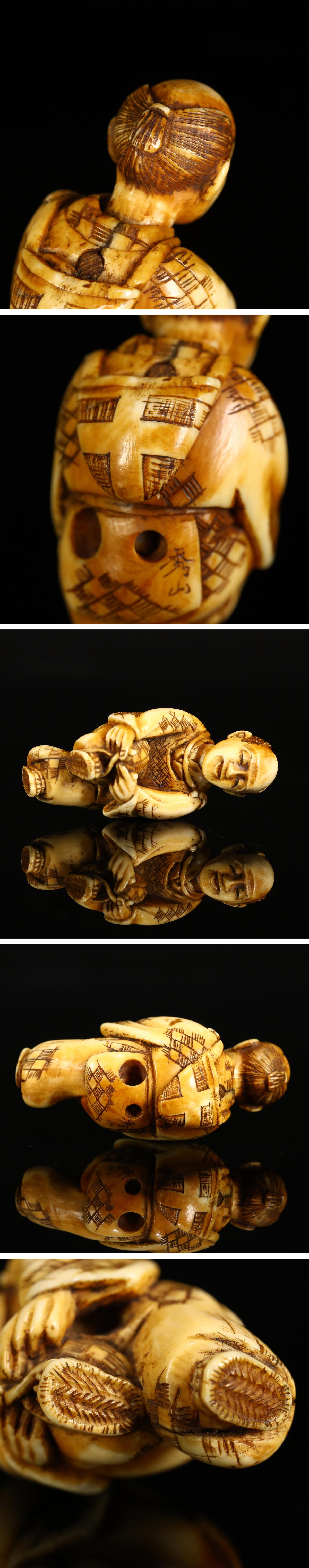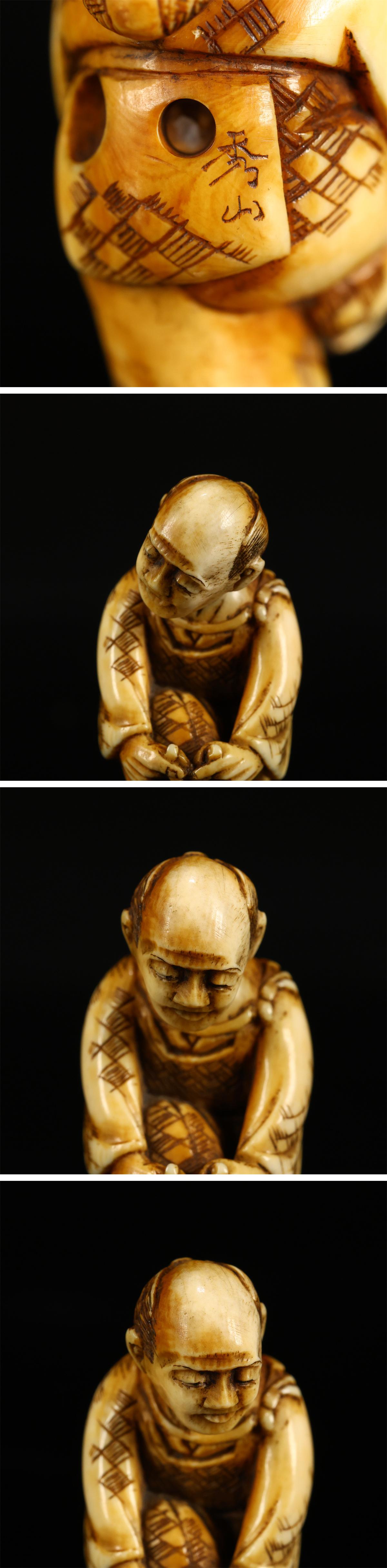 - 久1182 江戸時代 【秀山銘】 頭可動 自在 人物 根付 高4.5㎝ Ig!