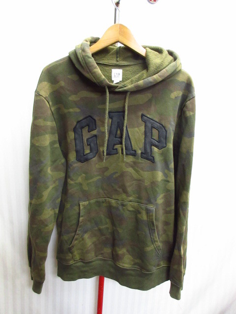 - GAP ギャップ ビッグロゴ迷彩柄パーカー メンズM XL相当 総柄スウェットパーカー フード付きジャージトップ フーディー ブルゾン 09193