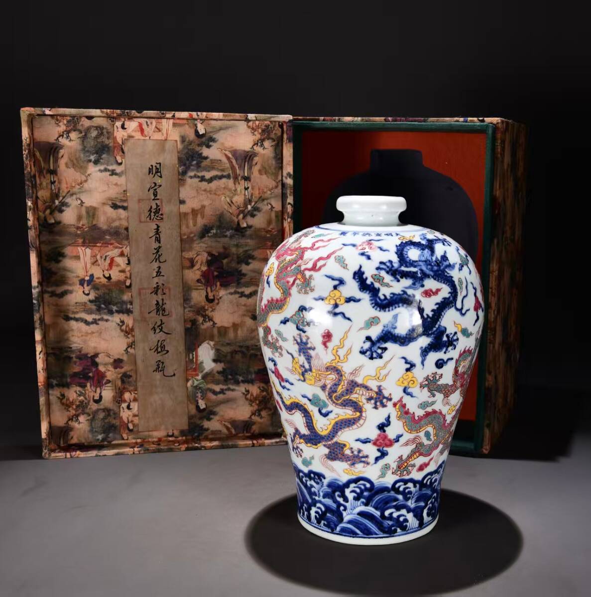 - 磁器 清宮旧蔵 大明宣德年製 青花 五彩 龍紋 梅瓶 古陶瓷 古擺件 古置物 中国古玩 骨董品 時代物 稀少唐物