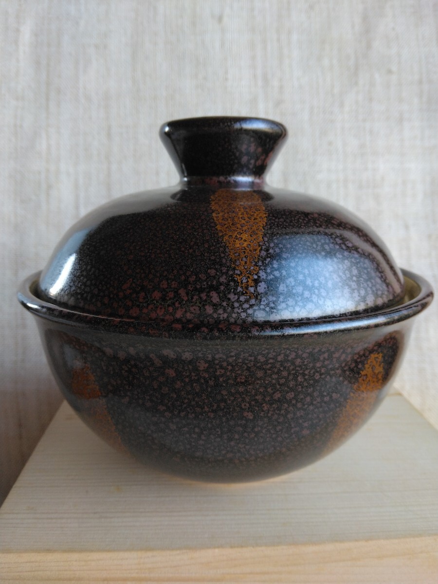 - 京焼 安田全宏(京焼の重鎮) 鹿深窯 油滴窯変 金彩 蓋付鉢 ボンボニエール 小物入 菓子器 在銘 共箱 茶道具 茶道