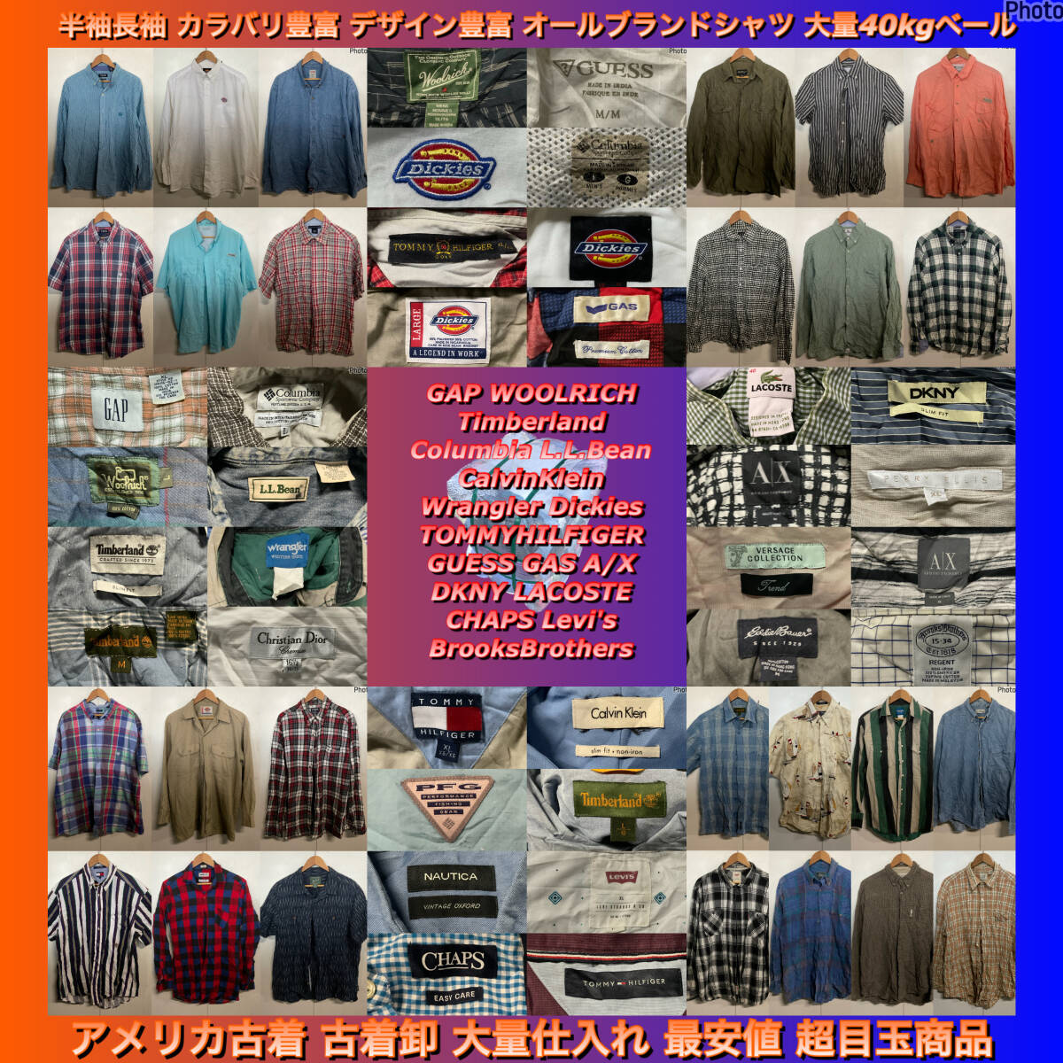 > 【T1448】★超目玉★ アメリカ古着 全ブランドシャツ 大量40kgベール 大量仕入れ デザイン豊富 半袖長袖 最安値 カラバリ豊富 激安