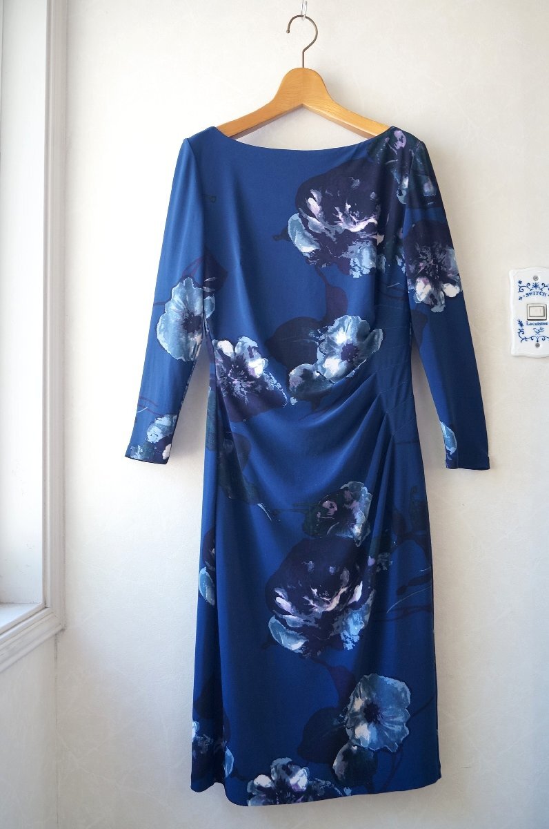 > ★送料無料! ラルフローレン *花柄 ドレープワンピース ストレッチ 七分袖/ブルー系 0* * 古着のgplus広島2509t4