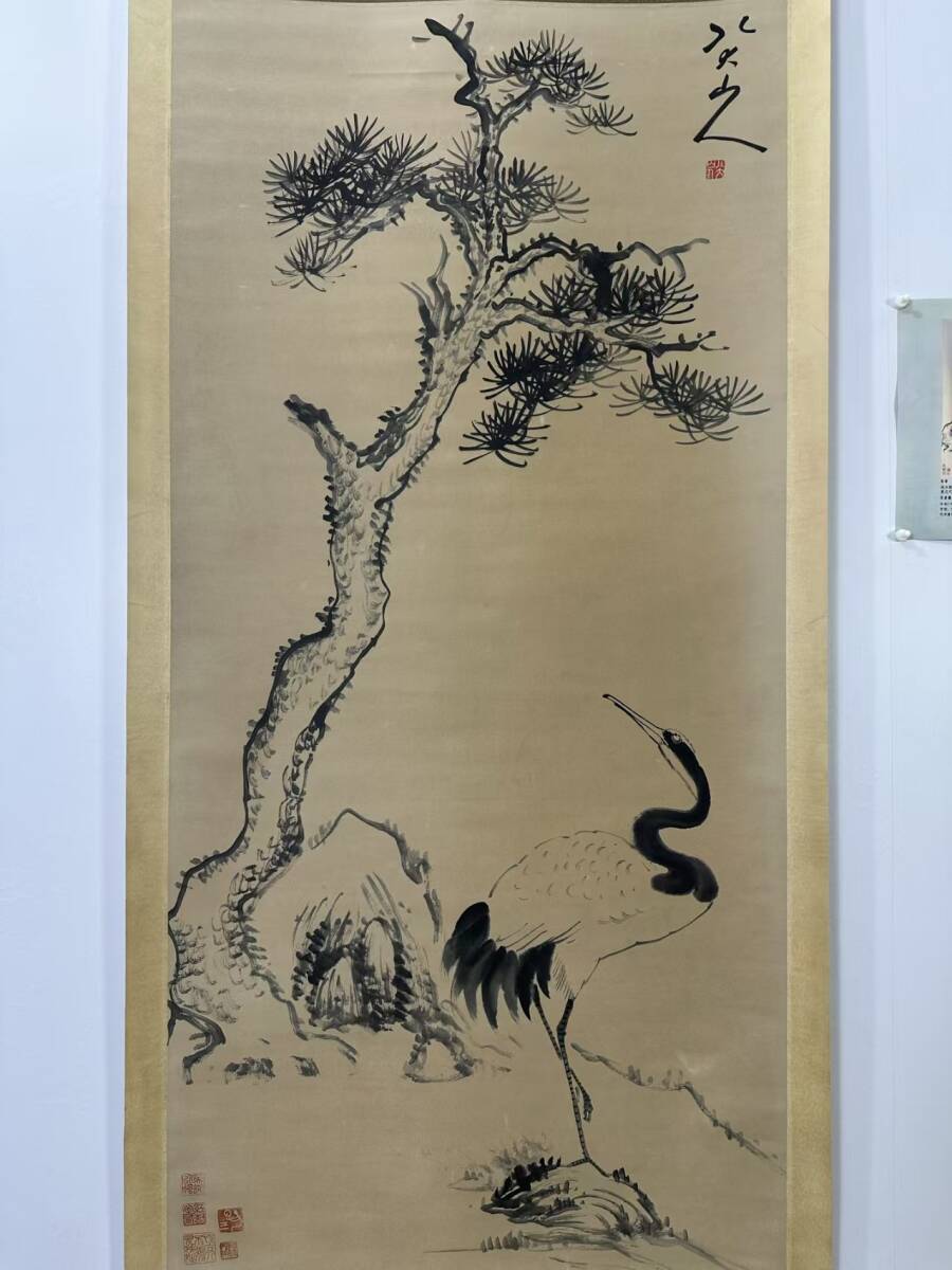 > 書画 早期收集 明時代 皇室畫家【八大山人】松鶴富貴圖 花鳥畫 旧藏 中国古画 純手描き画 水墨画 古美術品 時代物 古玩 骨董品唐物 宣紙925