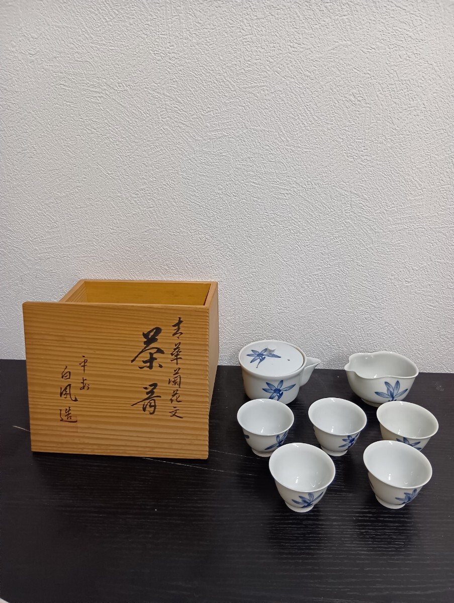 - 白鳳造 青華蘭花文茶器 共箱 C296
