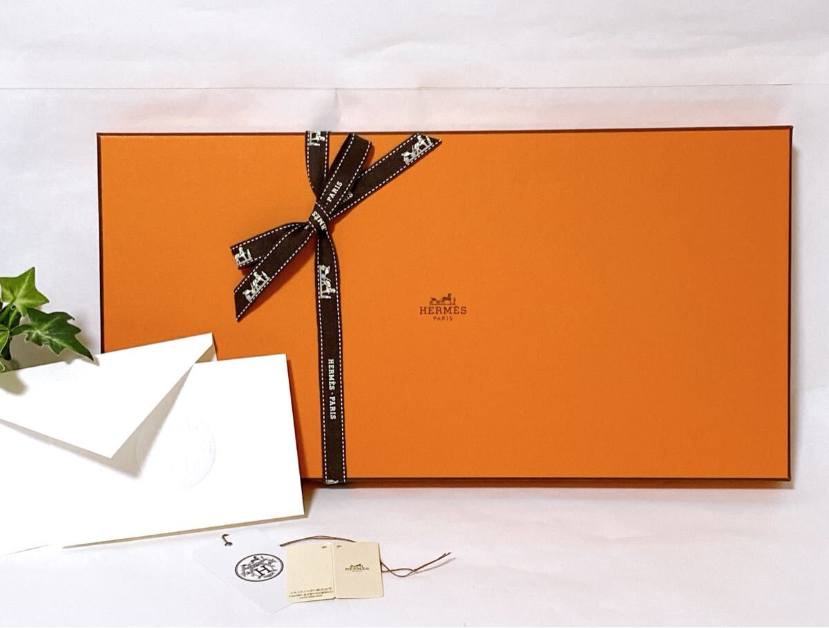 > エルメス「HERMES」空箱とメッセージカード 薄型 現行 (6096) 正規品 付属品 オレンジ色 薄紙あり エルメス箱 布製品などに ボックス 箱
