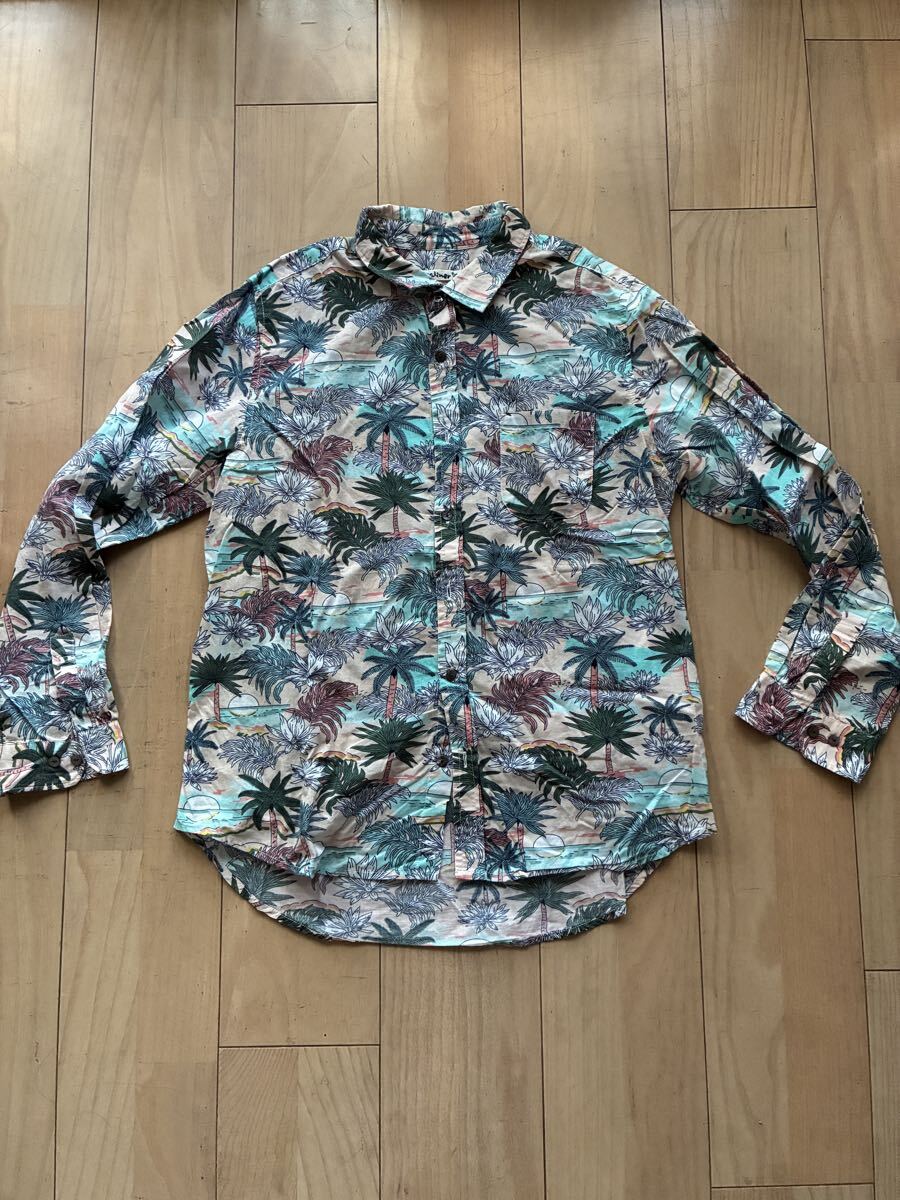 - カリネCaliner ハワイ柄 長袖 シャツアロハヤシの木柄Mサイズ フラダンスやウクレレ好きな方に