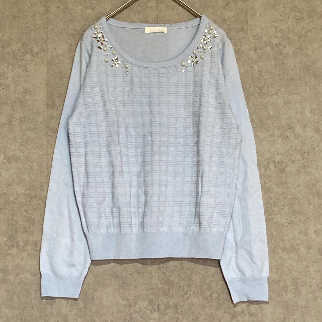 - 【新品】インデックス(M)ビジュー付ニット*薄手*ウール混*長袖*パール*水色