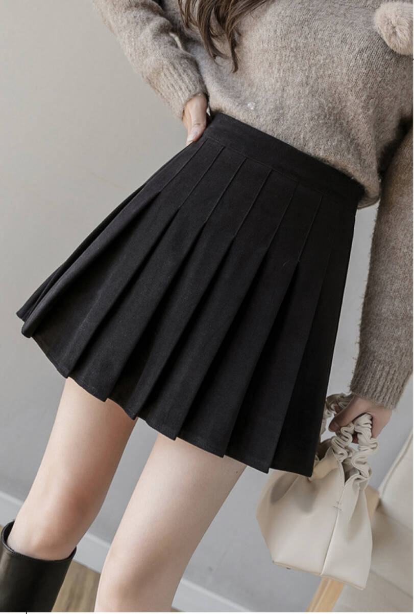 - 【新品!未使用!】プリーツスカート カレッジ風 ミニスカート ブラック Lサイズ Aライン