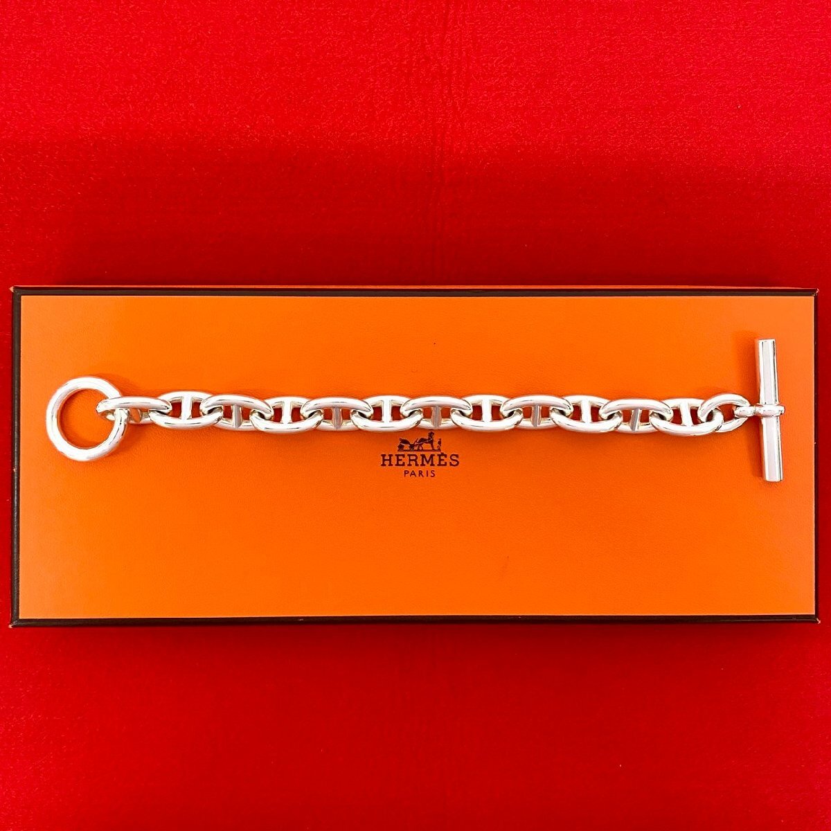 > 極 美品 HERMES エルメス シェーヌダンクル TGM 12コマ シルバー925 チェーン ブレスレット バングル アクセサリー シルバー 48493
