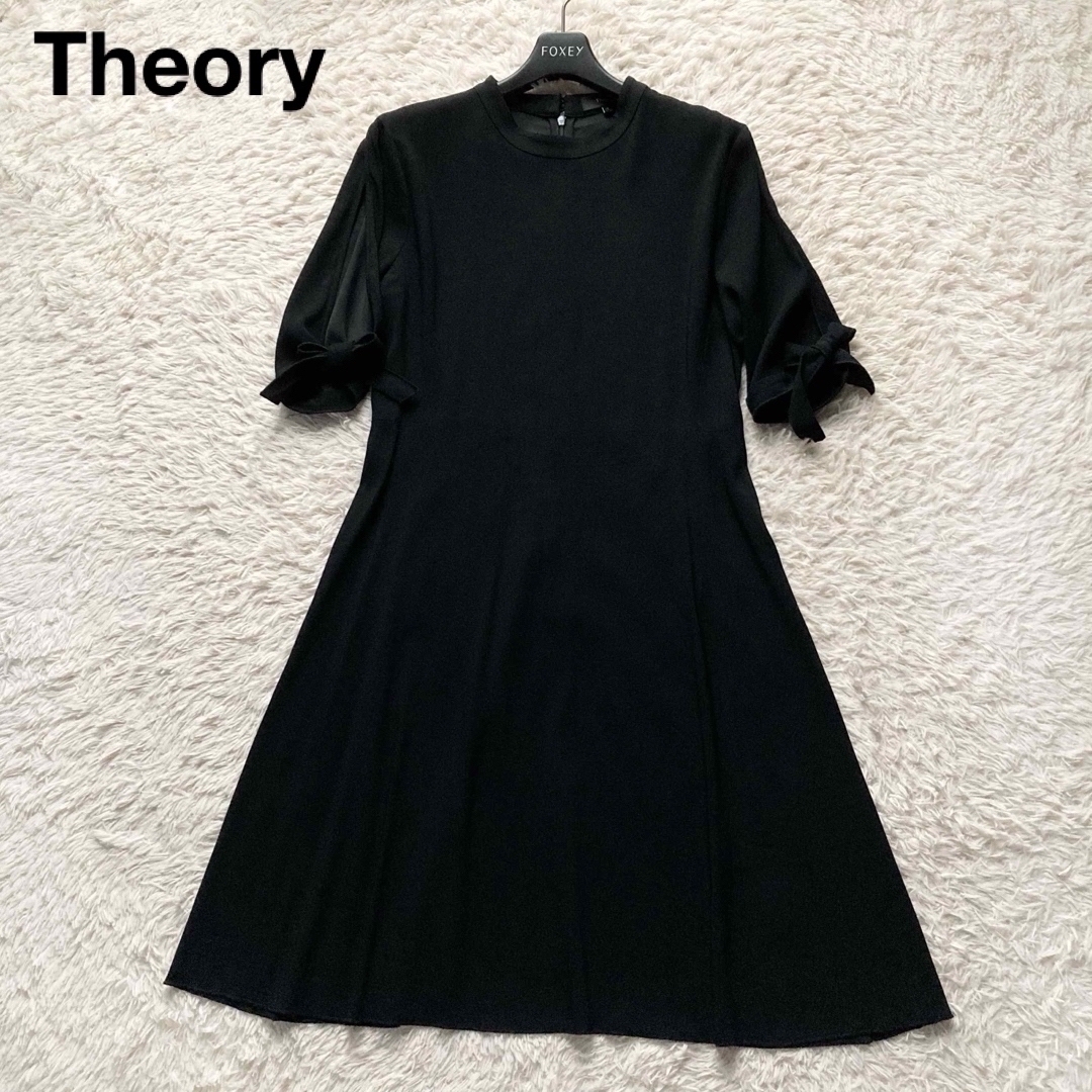 - セオリー Theory りぼん袖 上品 フレアワンピース Aライン 美シルエット ブラック 黒 2サイズ フォーマル対応