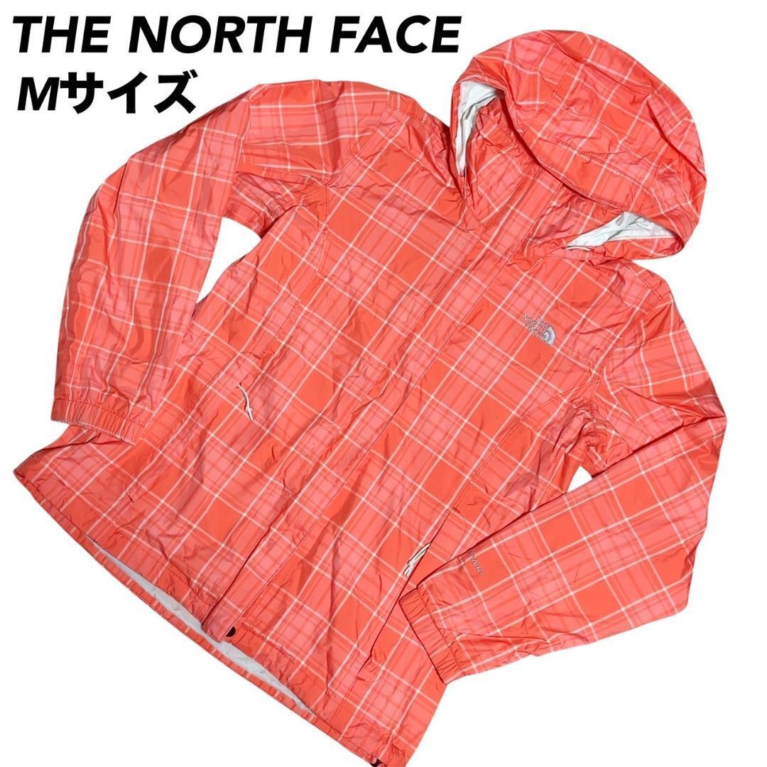 > ノースフェイス マウンテンパーカー レディース M コーラルオレンジ チェック THE NORTH FACE ナイロン レインコート