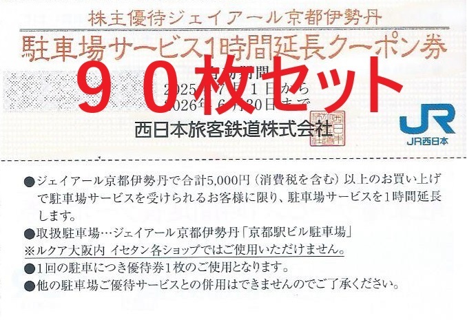 - 90枚セット■京都伊勢丹駐車場サービス1時間延長クーポン券■JR西日本株主優待