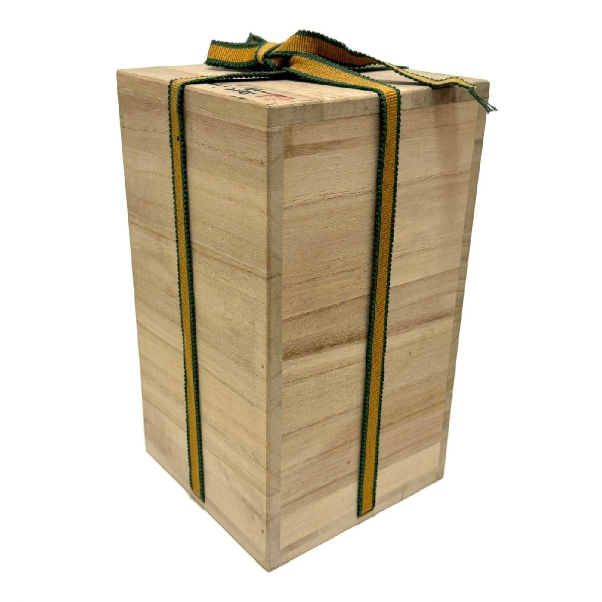 - 空箱 木箱 中古 備前 輪生 共箱 骨董品 ヴィンテージ レトロ インテリア 書道文字 筆文字 14.7cmx14.7cmx25.7cm 箱のみ