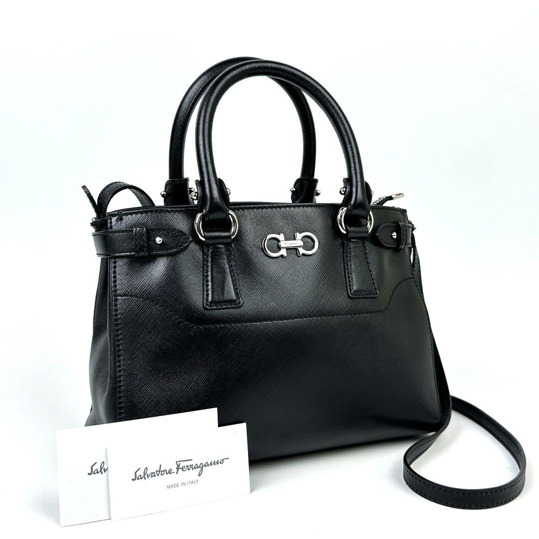 - 極美品 Salvatore Ferragamo サルヴァトーレフェラガモ ハンドバッグ 2way ショルダーバッグ ミニトート ダブルガンチーニ シルバー金具 黒