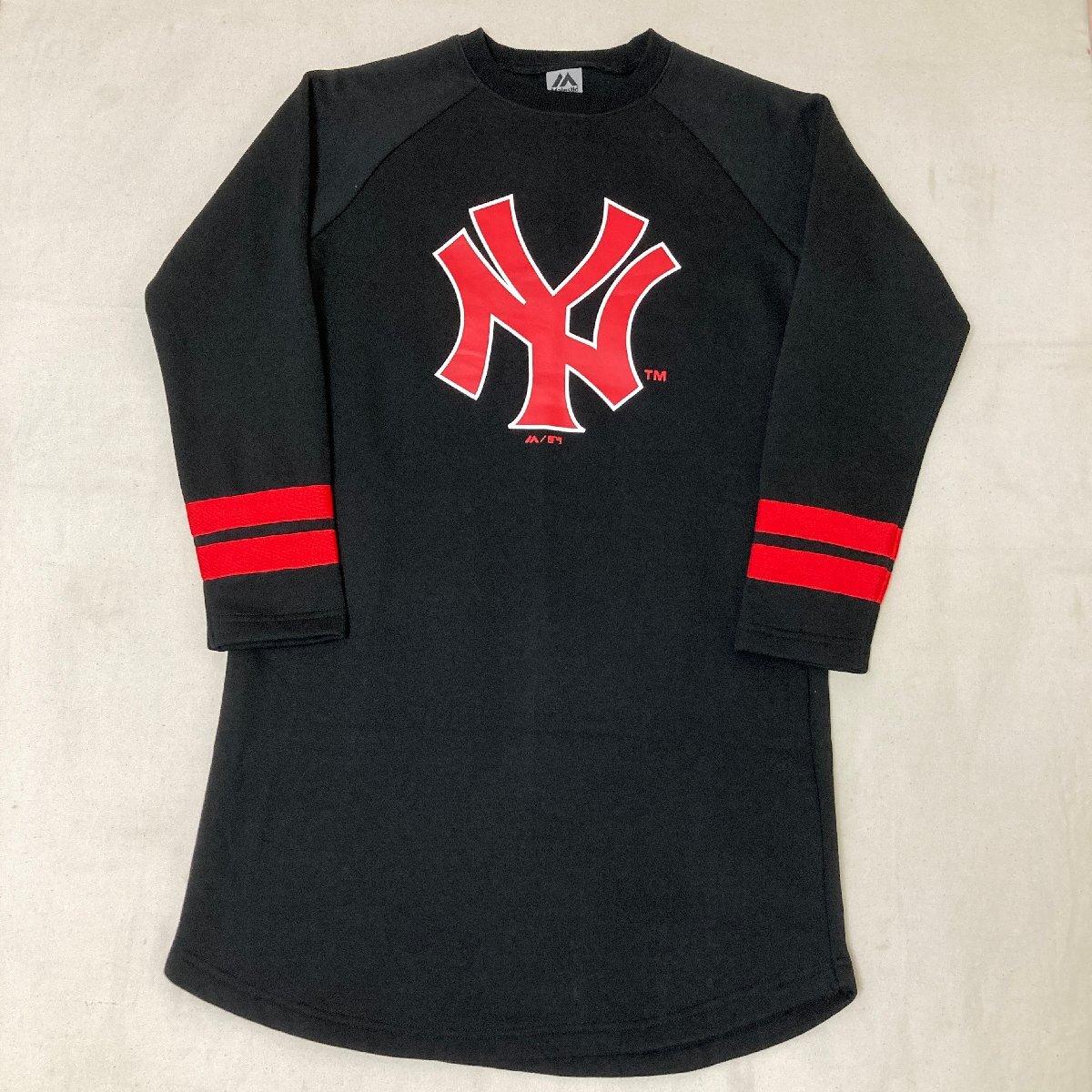 - Mjestic NYヤンキース ビッグロゴ プリント ラグランスリーブ トレーナー ブラック/黒 MEDIUM MW19-NYK-0029-BLK5-M