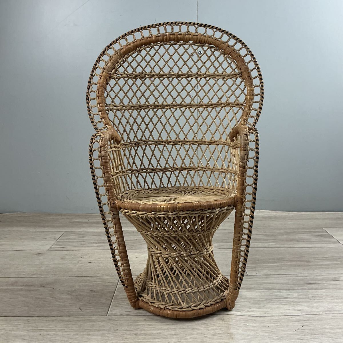 - t94109 ミニチュア ドールチェア 人形 籐椅子 ラタンチェア ピーコックチェア アンティーク インテリア 高さ約 42cm 中古