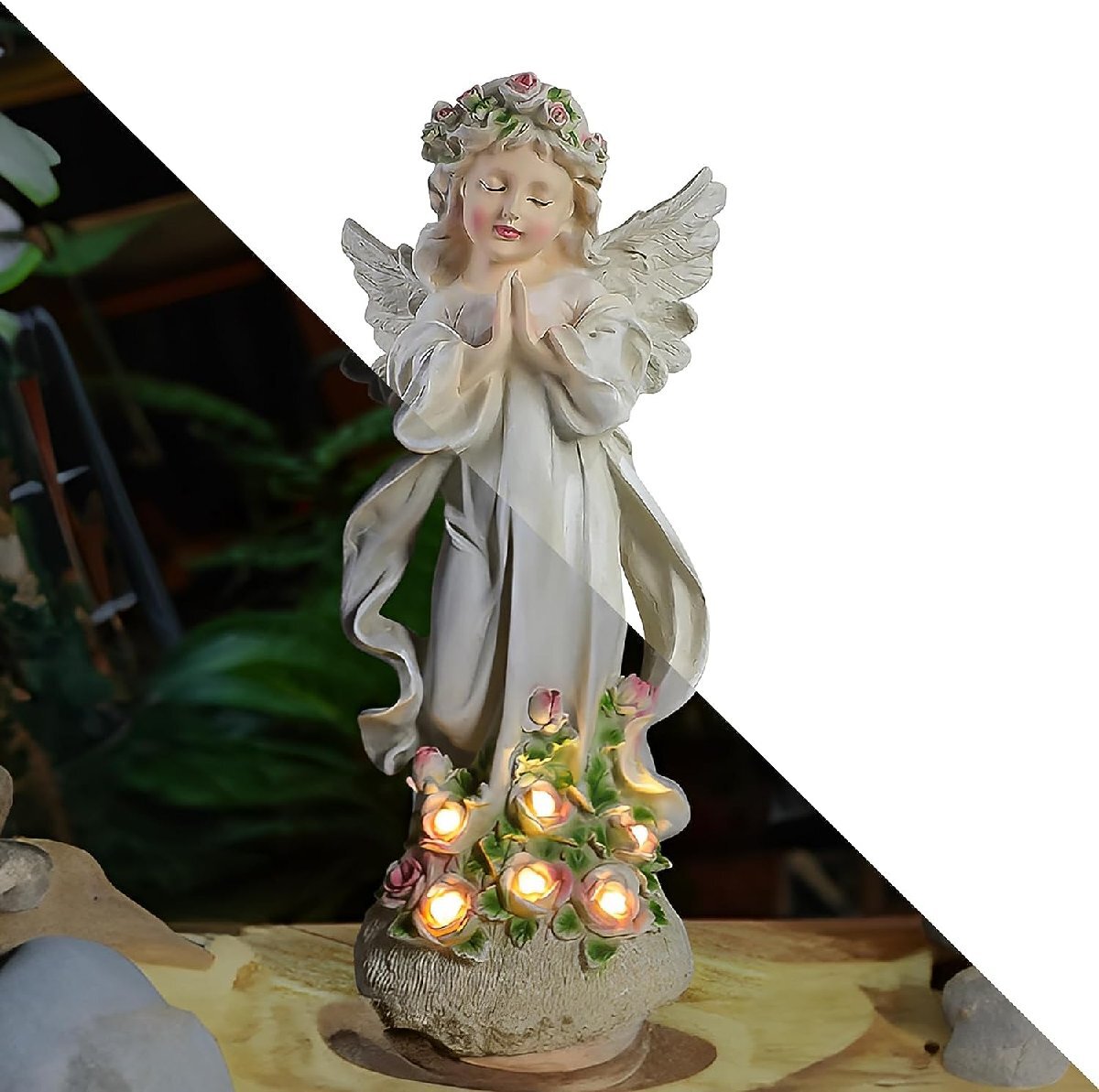 - エンジェル花の祈りの天使 ガーデン彫像置物 屋内屋外装飾 ソーラー庭園彫刻 パティオ 芝生装飾 贈り物 輸入品