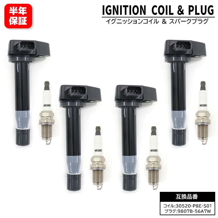 - ホンダ ストリーム RN1 RN2 イリジウム スパークプラグ & イグニッションコイル 4セット 9807B-56A7W 30520-P8E-S01 互換品 6ヵ月保証