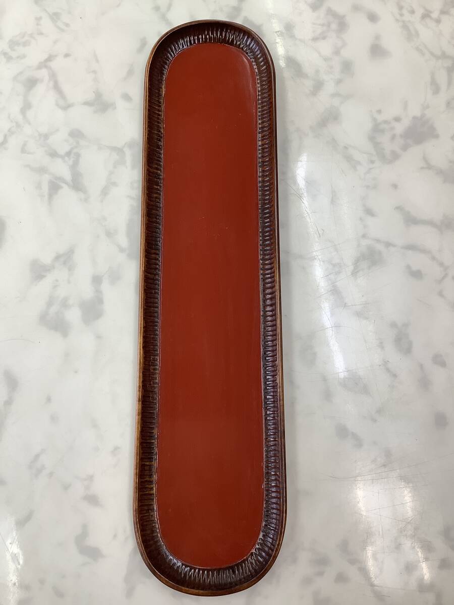- T0188 茶道具 煎茶道具 煎茶盆 長盆 お運び盆 讃岐彫 うるし塗装 天然木 一文字盆