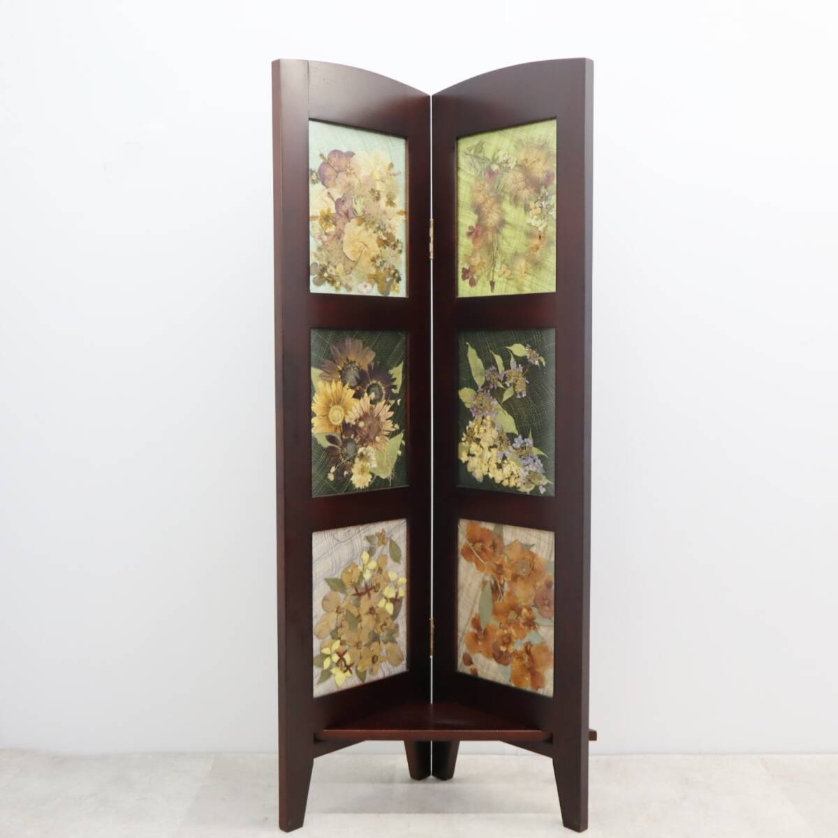 - ▼インテリアに!!! 約108×29.5cm|2面屏風 押し花 | アートフラワー 押花 ハンドクラフト 木製ガラス額入り■P3342