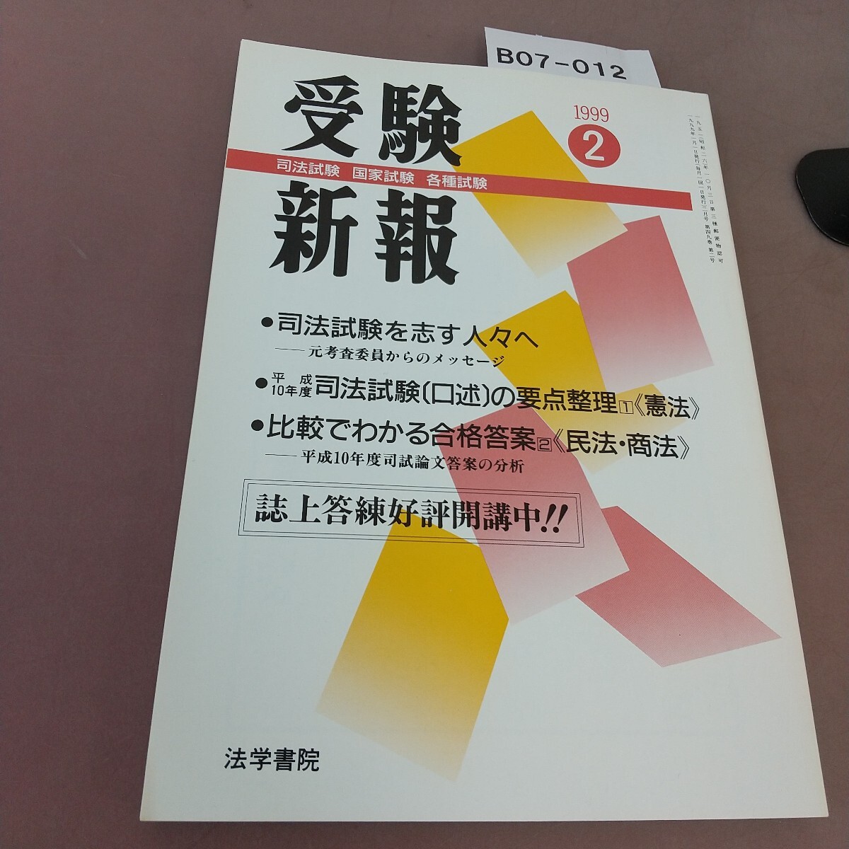 - B07-012 受験新報 1999.2月号 特集 司法試験を志す人々へ 法学書院 付箋貼り付けあり