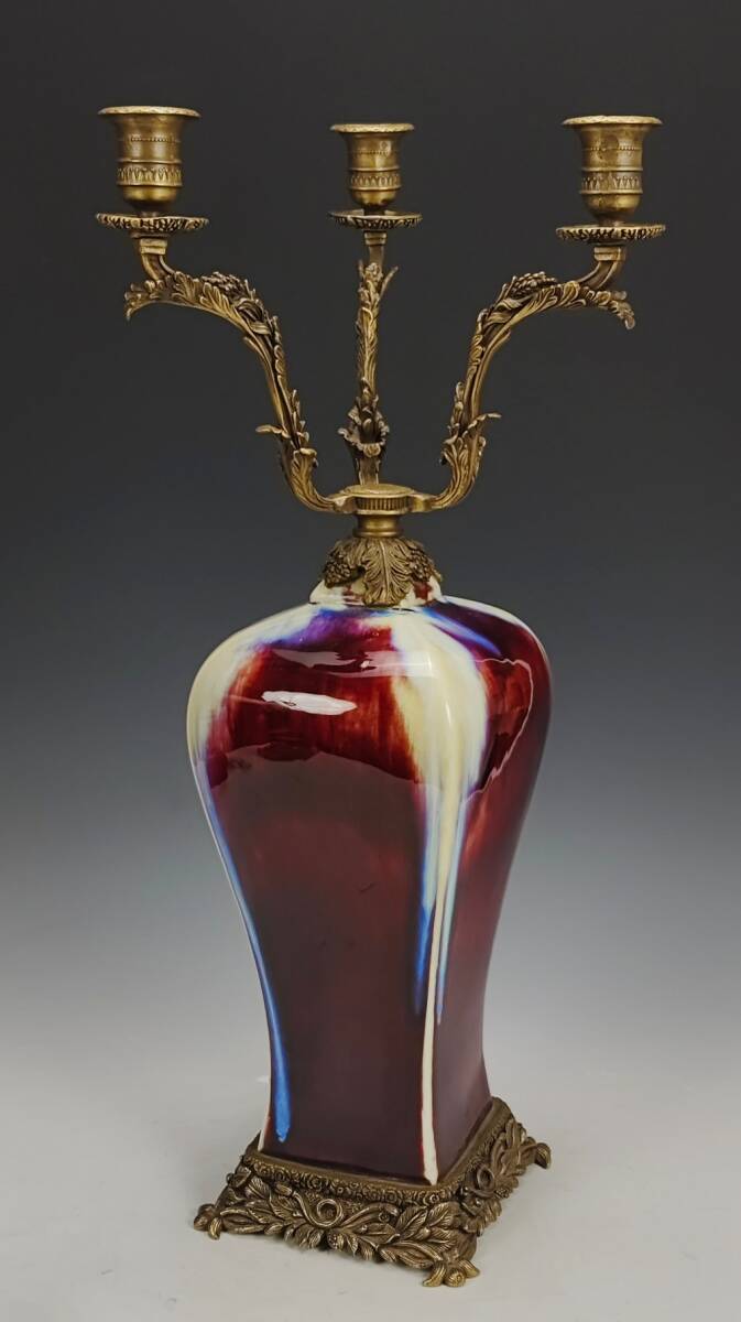 - 9+GV9725「東洋美術」 中国骨董 人間国宝 磁器製品【赤い釉薬を象嵌した精巧な銅製のランプ装飾品】 旧物 孤品 珍品 陶磁器 収蔵価値が高い