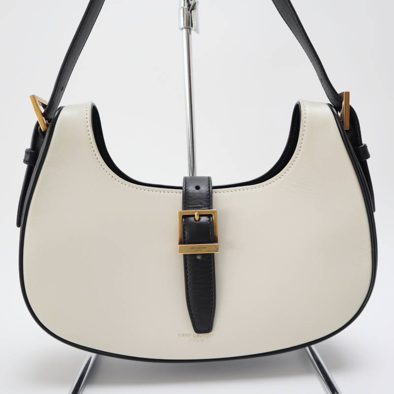 > 美品 SAINT LAURENT PARIS サンローランパリ ル フェルモワール ホーボー レザ―ハンド/ワンショルダーバッグ ホワイト/ブラック S09-k100