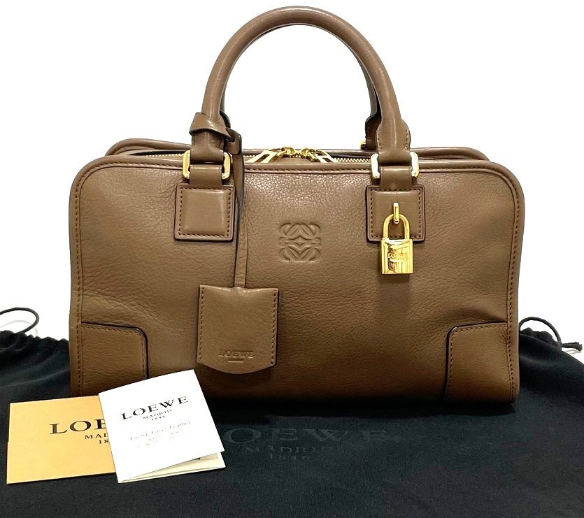 - LOEWE ロエベ アマソナ28 アナグラム ハンドバッグ トートバッグ レザー ブラウン × ゴールド金具 保存袋 付き
