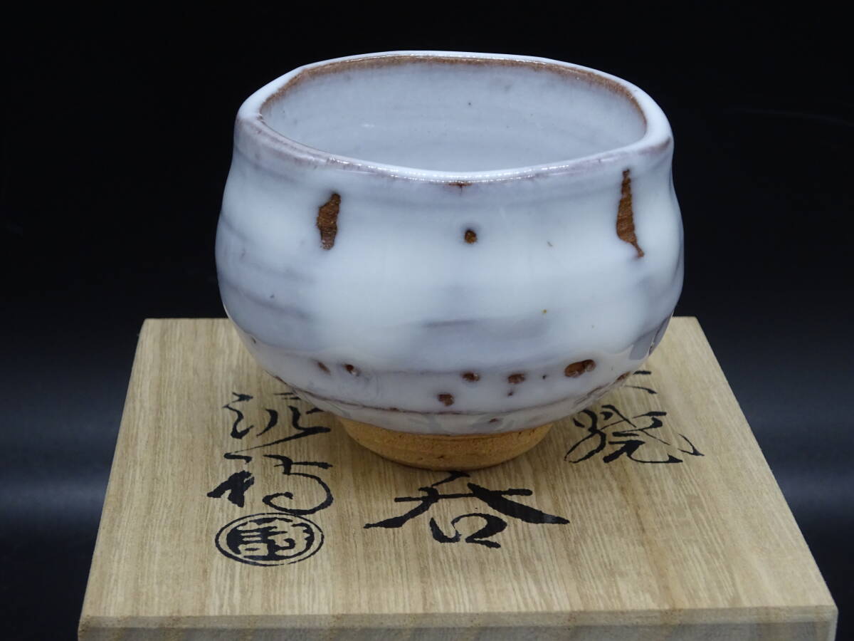 - 萩焼 人気実力作家 渋谷泥詩 萩焼窯元御台場窯 萩伝統工芸協会会長を歴任★萩焼白萩ぐいのみ 共箱、陶歴付 茶道具