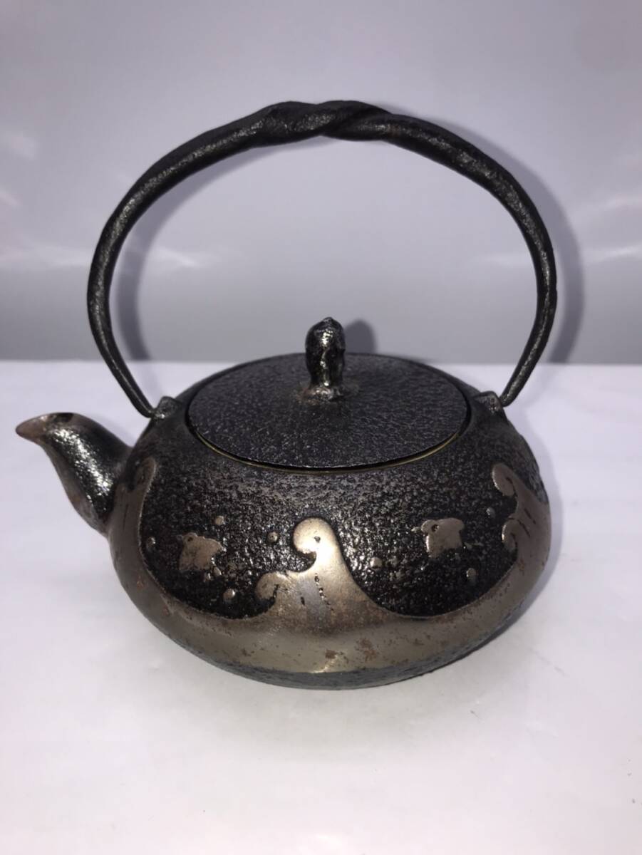 - 【管K748】 鉄瓶 南部鉄器 急須 照光堂 波千鳥文 現状品 昭和レトロ ビンテージ アンティーク コレクション