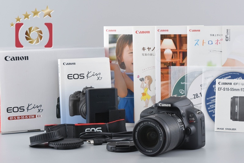 - 【中古】Canon キヤノン EOS Kiss X7 EF-S 18-55mm IS STM レンズキット ブラック シャッター回数僅少 元箱付き